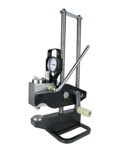 采用液壓原理,手動操作產生3000kg試驗力。核心部件是一個小型液壓系統,液壓系統中有一個控制閥,用于控制試驗力,每當試驗力達到3000kg時,控制閥打開,壓力下降。按照美國標準ASTM E110的規定,要重復加力3~4次,讓壓力表指針3~4次達到3000kg,以此等效布氏硬度試驗方法中關于3000kg試驗力,10mm球,加力10~15秒的規定。