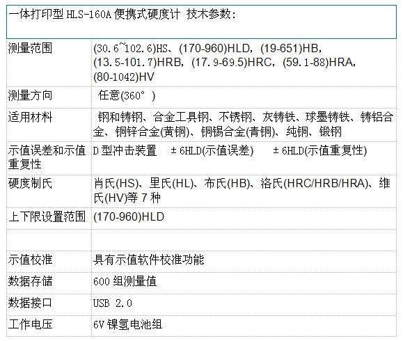 一體打印型∣HLS-160A便攜式硬度計 功能特點: