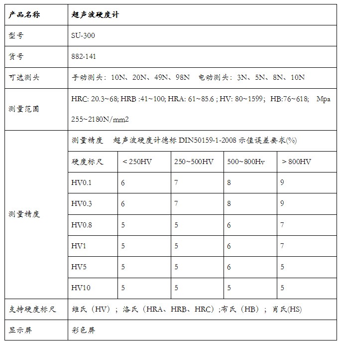 新研發成功的SU-300采用超聲波接觸阻抗法對試樣進行比較測量,不僅具備了國際主流品牌超聲波硬度計的測試壓痕小、測量時間快、測量精度高的特點,還創新使用了人體工程學流線型設計,采用高清晰的彩色液晶屏作為顯示終端,使得人機操作界面更加友好,更容易讓非專業人士上手操作。 一直致力于讓測量變得更加精準和簡單,公司通過ISO9001:2008認證。 超聲波硬度計采用國外技術,進口原件在中國進行組裝生產,隨機超聲波硬度計樣機已經通過中國權威檢測機構——中國計量科學研究院檢定,產品精度完全符合美標ASTM A1038-2005,歐標DIN50159-1-2008和中國行業標準JB/T9377-2010技術要求。